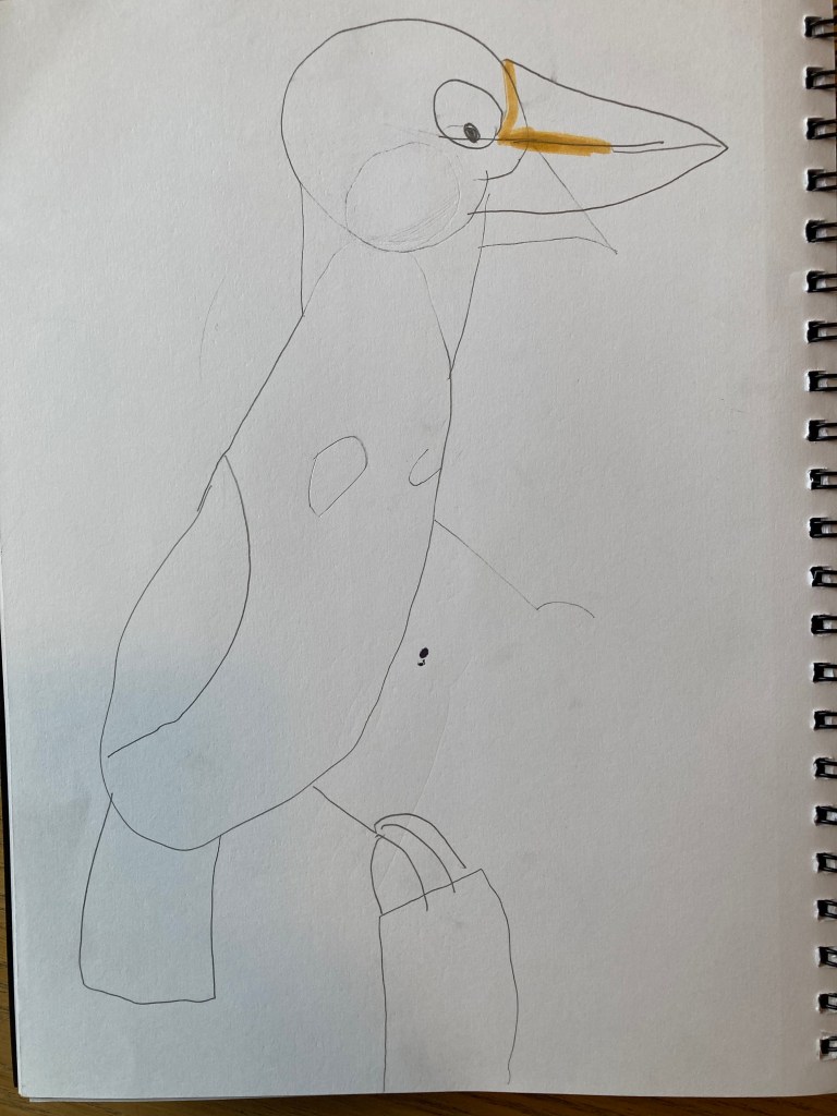 I like sketching because it helps me be a better birder. Sketching helps me be a better birder because if you see a bird that has a lot of color and/or detail it may be easier to draw it instead of writing about it. By sketching you can find out what kind of bird it is when you get home in case you forgot your bird book. For sketching you need a pencil, paper, and a bird. I created an example for sketching directions. It has simple instructions for any bird. Then Lucy drew a bird with my instructions. For me sketching is some of the best types of drawing and it is fun. Most of the birds that I sketch are chickadees and eagles.
