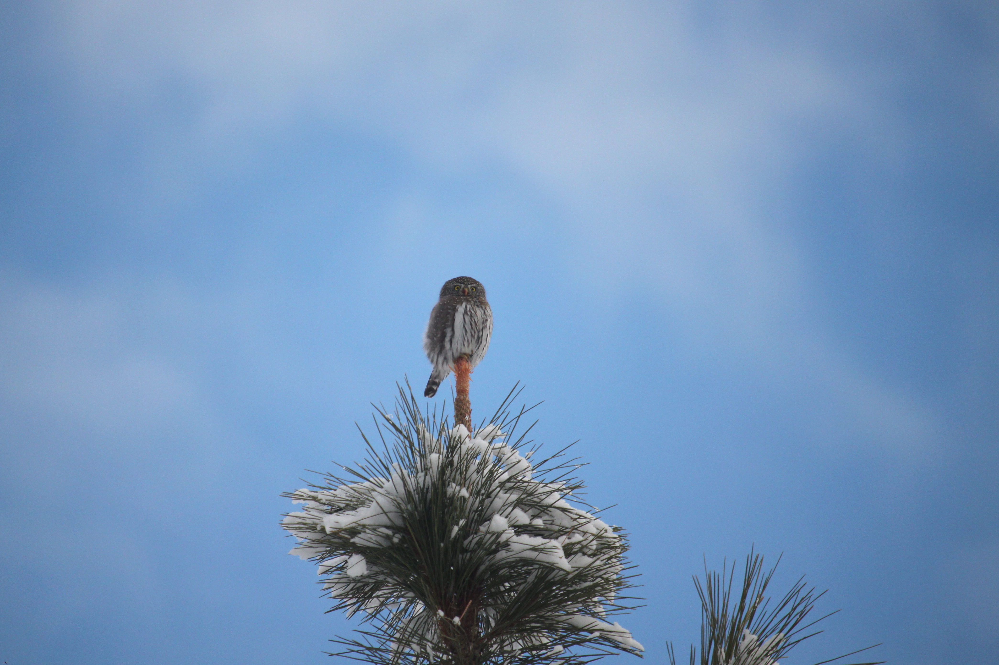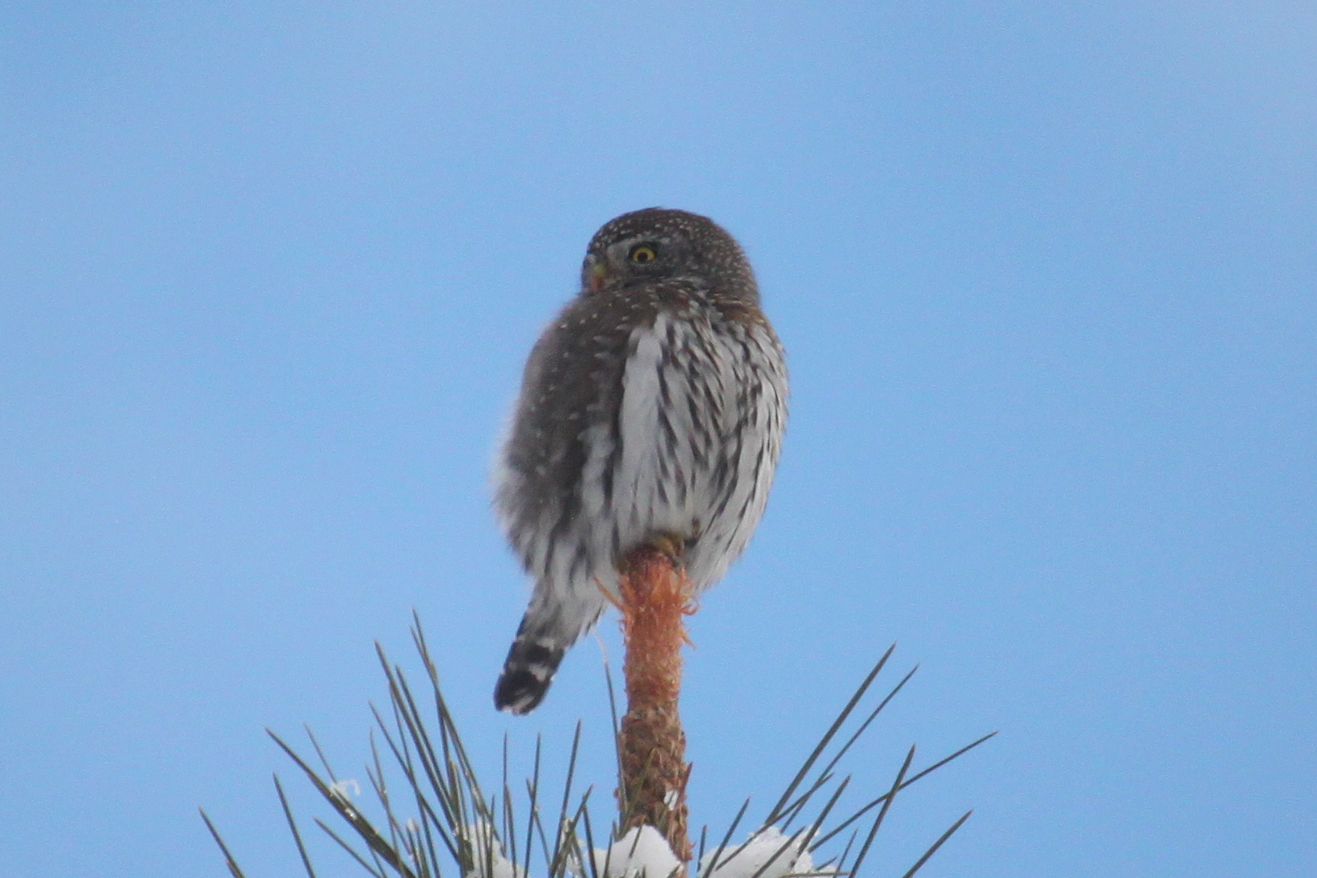 On Wednesday, January 11, 2023, I went birding with Lucy, Papa, and Tyler at Maclay Flat. Only 2 seconds after exiting the car, all of us were staring at a northern pygmy-owl that had posted up on a small conifer next to the entrance of the trails. After about thirty pictures or so, we moved on. As I was the one to spot the owl it was my responsibility to alert other people. One of the first people we met was a little kid and his mom taking their dog for a walk. Once we told the mom about the owl, the little kid said that it was probably a saber-toothed tiger! We all found that very funny! Further down the trail Tyler spotted another pygmy owl. It was nestled in a cottonwood to the right of the trail. We returned to the parking lot to find that the pygmy owl hadn’t moved for an hour and a half!