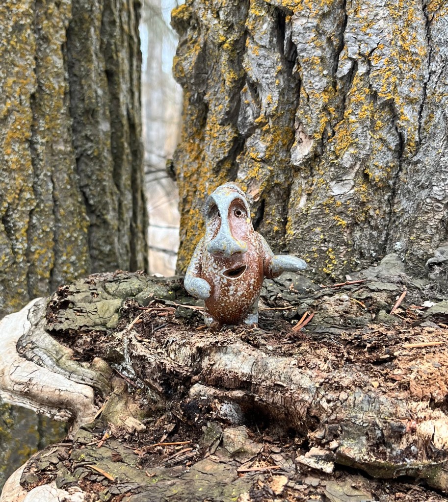 I was amazed, apparently the gnome had been sitting in a small piece of bark still attached to the tree. We had found a few of the nature gnomes before, but I still appreciate the way each of them were different. This one had a little bottom that stuck out like it was sitting down. The other one we had found was at Kelly Island, shoved into a log. I turned around a bend and the sound of an alarmed chickadee reached my ear.