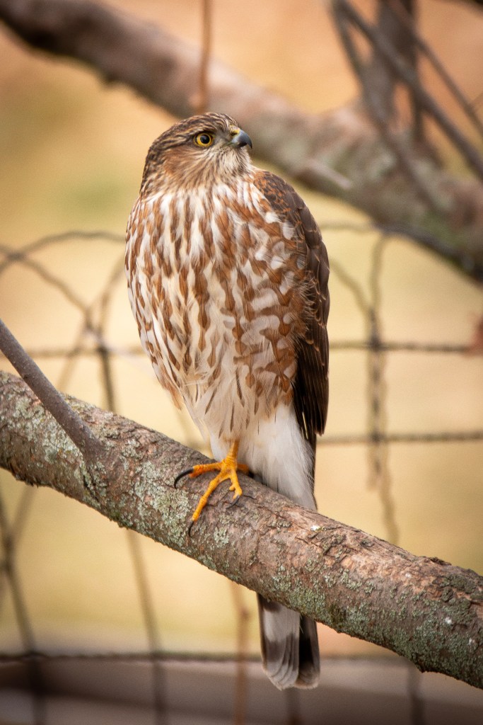 As the trees shed their leaves and the days grew shorter, I spent a lot of evenings on our back porch taking pictures of the chickadees and sparrows. One evening as the sun illuminated our neighbors fence, I decided to fill up the bird feeders and see if anything was interested in stopping by. Soon enough, the House Sparrows and chickadees swarmed the feeder, emptying it in minutes. I looked up from the buffet to see this guy watching the commotion with questioning eyes. Trying to pull the huge bag of birdseed up the stairs, I headed back inside.