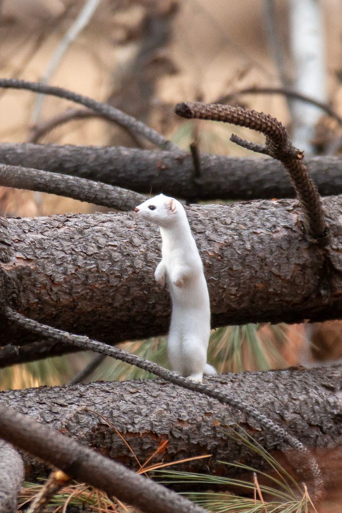 Least weasels are native to Montana but extremely rare, that is why I was so surprised when I saw one. It was a Friday afternoon at Maclay Flat. I was looking for owl pellets and Dottie was looking for the Barred owl. We were at the owl pellet tree when Mom yelled “weasel!”. True to her word there was the weasel. Of course, Dottie started clicking her camera. I realized right then and there that the Least Weasel was the most adorable animal in the world. When we saw the weasel it was pure white in a environment of brown and black